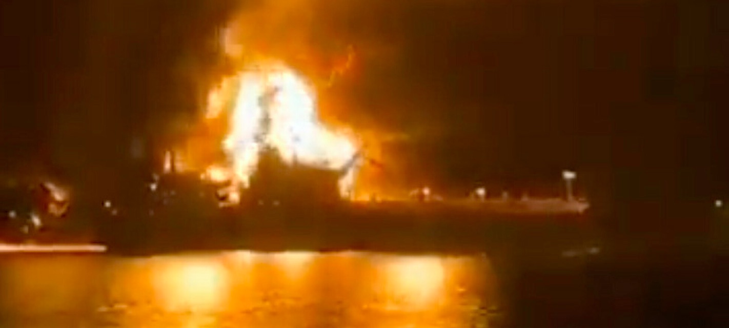 Sambært Reuters varð skipið rakt í stýriborðssíðu og byrjaði at brenna.