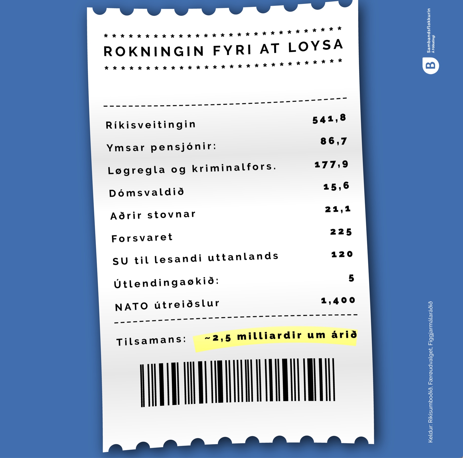 Loysingarætlanirnar hjá samgonguni og Fólkaflokkinum kosta sostatt 2,5 milliardir krónur hvørt einasta ár.