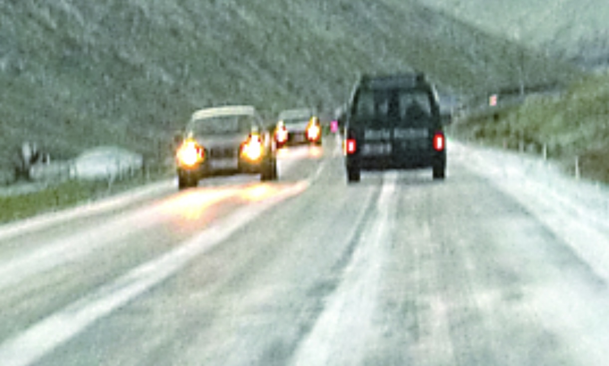 Tað var sera hált á vegnum millum flogvøllin og bygdina. Í tveimum førum steðgaðu bilar á við vegjaðaran í brekkuni oman móti bygdini, tá tað var sum á kalvabaki.