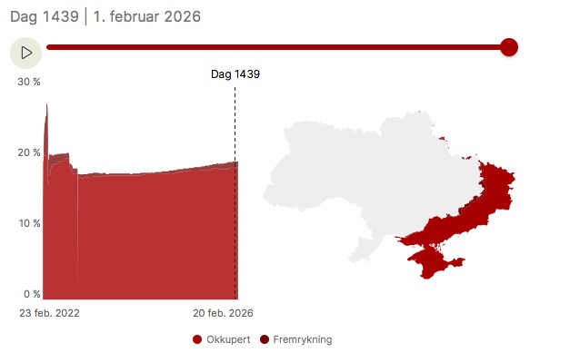 Framgongdin hjá ukrainska herinum hesar dagar svarar til meginpartin av tí landaøki, sum russar megnaðu at taka frá Ukraina allar desember 2025. Hetta veit tíðindastovan AFP at siga, og keldan er amerikanski stovnurin, Study of War, stytt ISW.