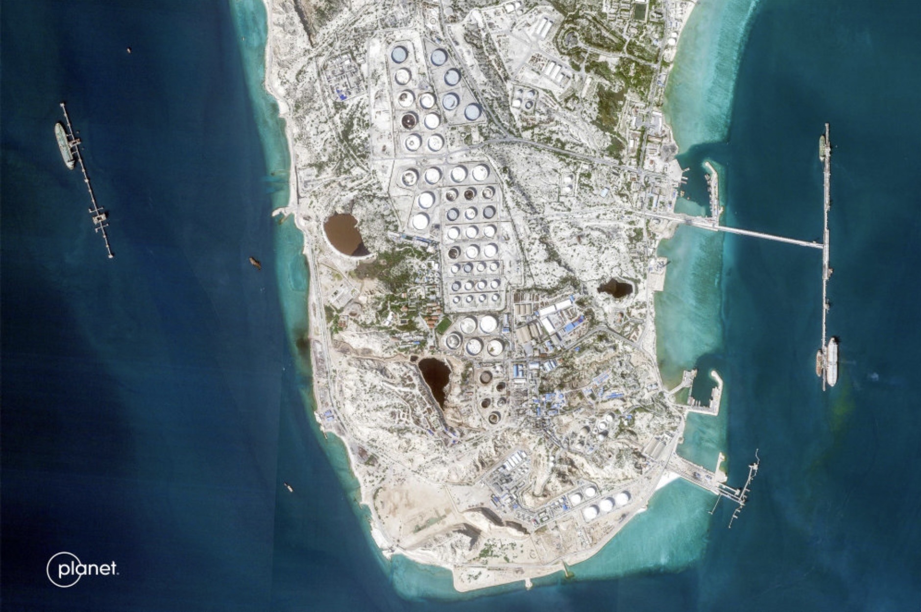 Ein fylgisveinamynd, sum er tikin 22. februar, vísir oynna Kharg, haðani meginparturin av oljuni í Iran verður útflutt. (Savnsmynd). - Mynd: -/Ritzau Scanpix