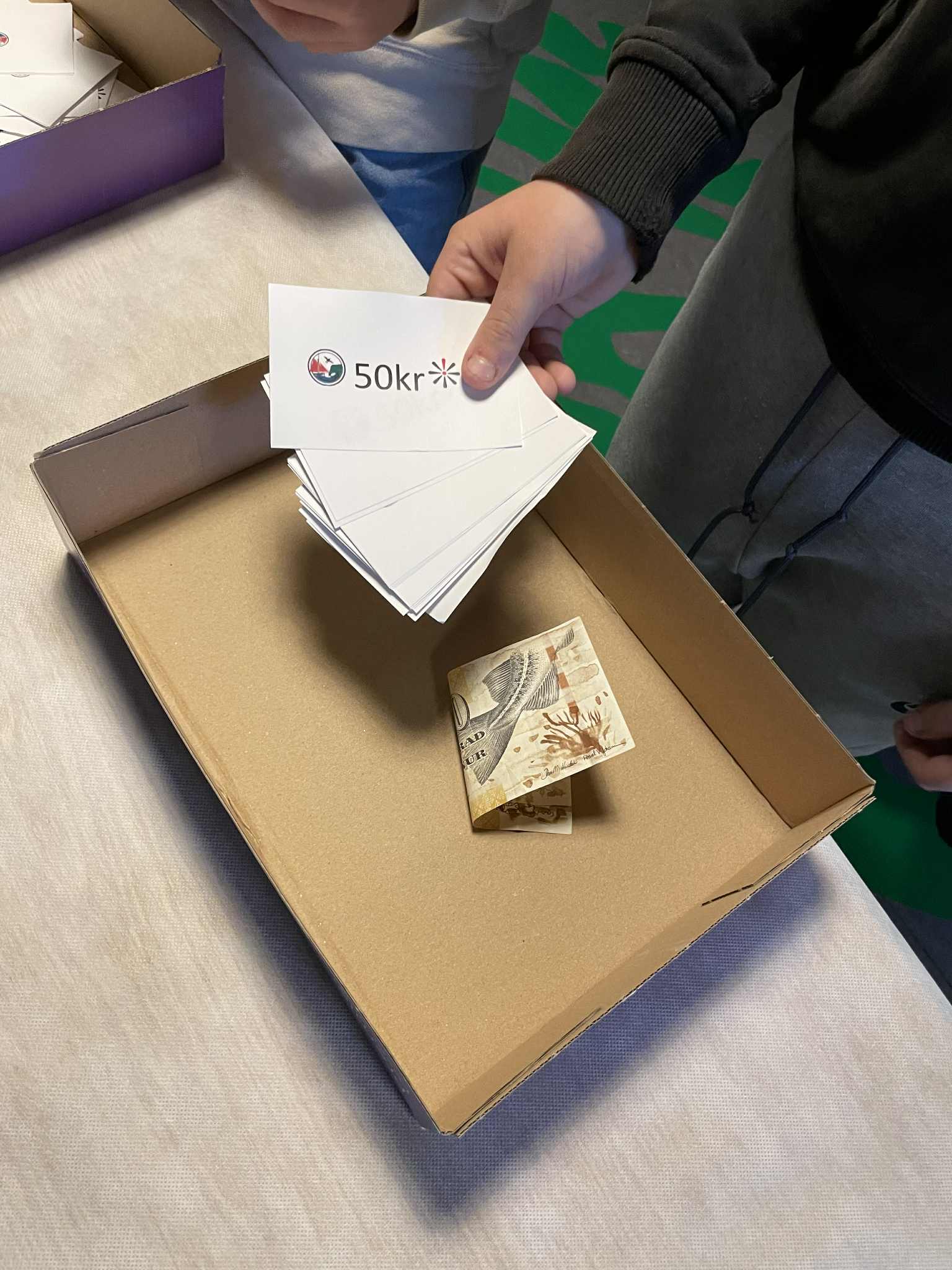 Í kvøld var opið hús fyri foreldrum og øðrum áhugaðum. Vitjandi kundu seta veruligan pening í bankan, og fáa skúlapening ístaðin, ið kundi nýtast í lítla samfelagnum.