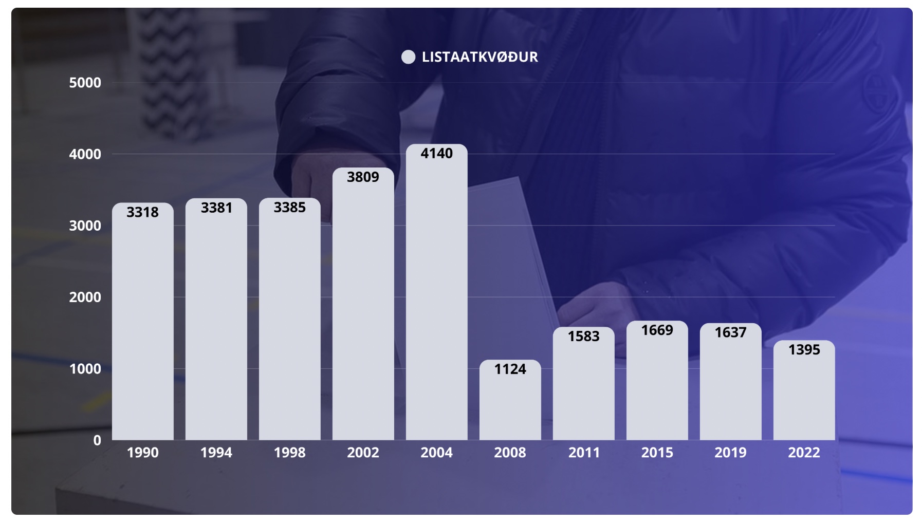 Fýra ár frammanundan, í 2004, vóru tað 4.140 fólk, ið valdu ein lista heldur enn eitt einstakt valevni.
