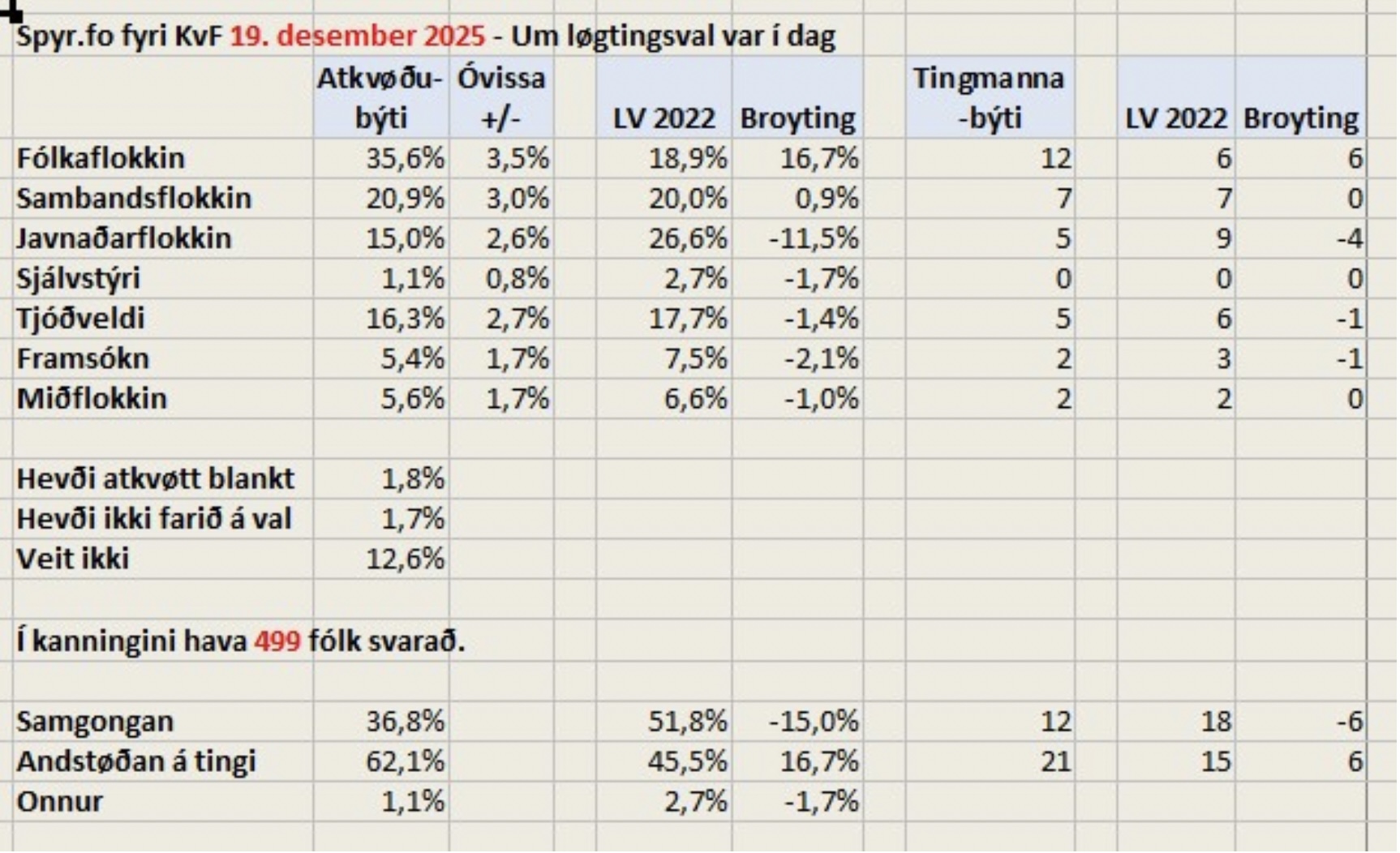 Ein veljarakanning er ein løtumynd. Men allar veljarakanningar seinastu árini hava verið slíkar, sum hendan, og tí er kanningin ikki hugaligu lesnaður hjá løgmanni og hansara fólki – tí fleiri slíkar keðiligar veljarakanningar á rað vísa eina sannlíka gongd við undirtøku floksins.