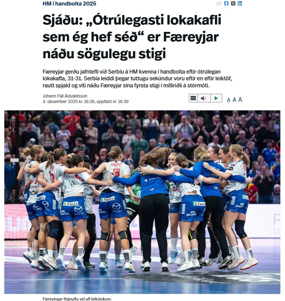 (RÚV um føroyska HM-bragdið) Føroysku hondbóltskvinnurnar stjala aftur yvirskriftir í grannalondum okkara