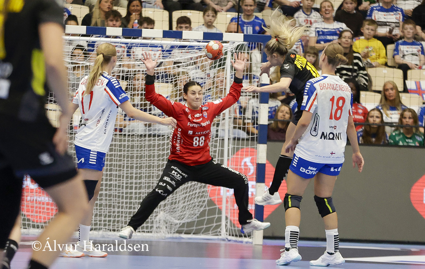 Føroyar: Jana Mittún 6, Pernille Brandenborg 5, Súna Krossteig Hansen 4, Lív Sveinbjørnsdóttir Poulsen 3, Anna Elisabeth Halsdóttir Weyhe 3, Maria Halsdóttir Weyhe 1, Elsa Egholm 1, Bjarta Osberg Johansen 1, Rannvá Olsen 1, Maria Páldóttr Nólsoy 1