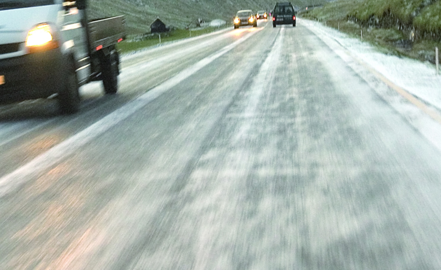 Annars hevur verið hált kring alt landið, verður sagt av politistøðini. Okkurt minni óhapp hevur verið í ferðsluni. Norðanfyri fór ein bilur á glið og endaði í autoverjuni.