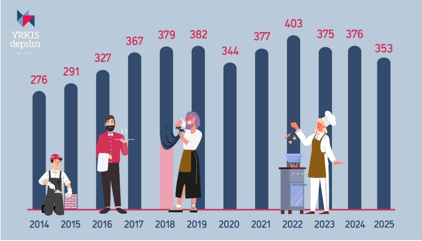 Í 2025 byrjaðu 353 fólk eina yrkisútbúgving. Tað eru 55% av einum miðal føroyskum árgangi seinastu 20 árini.